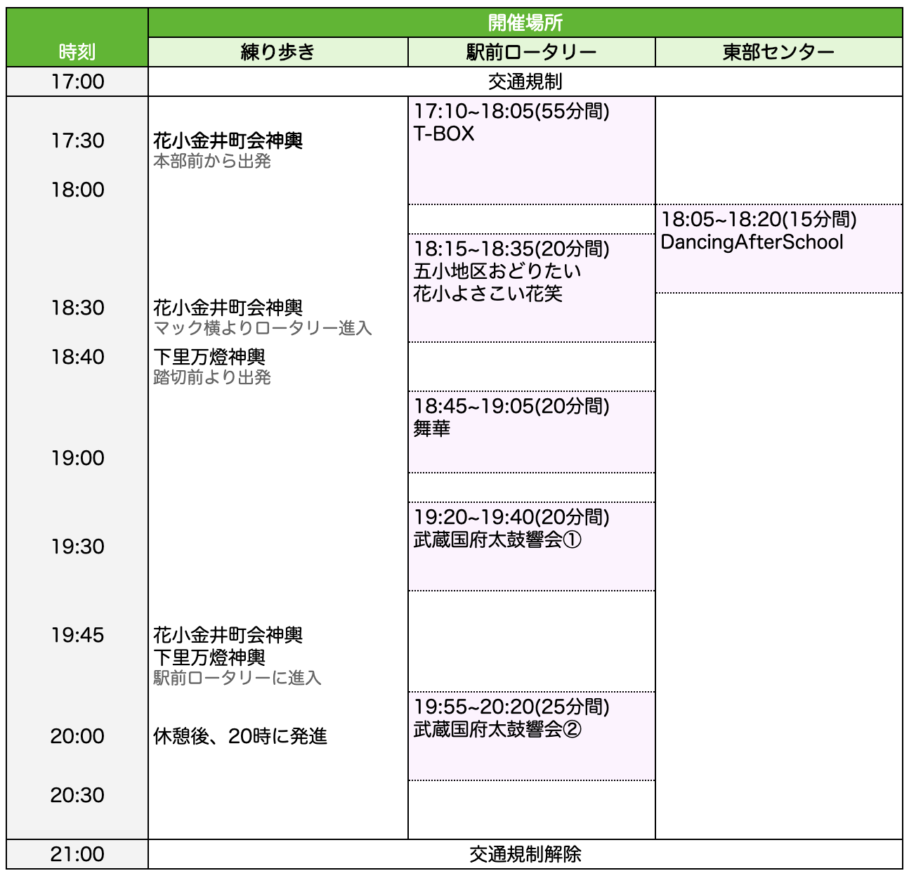 | 時刻 | サンバパレード |